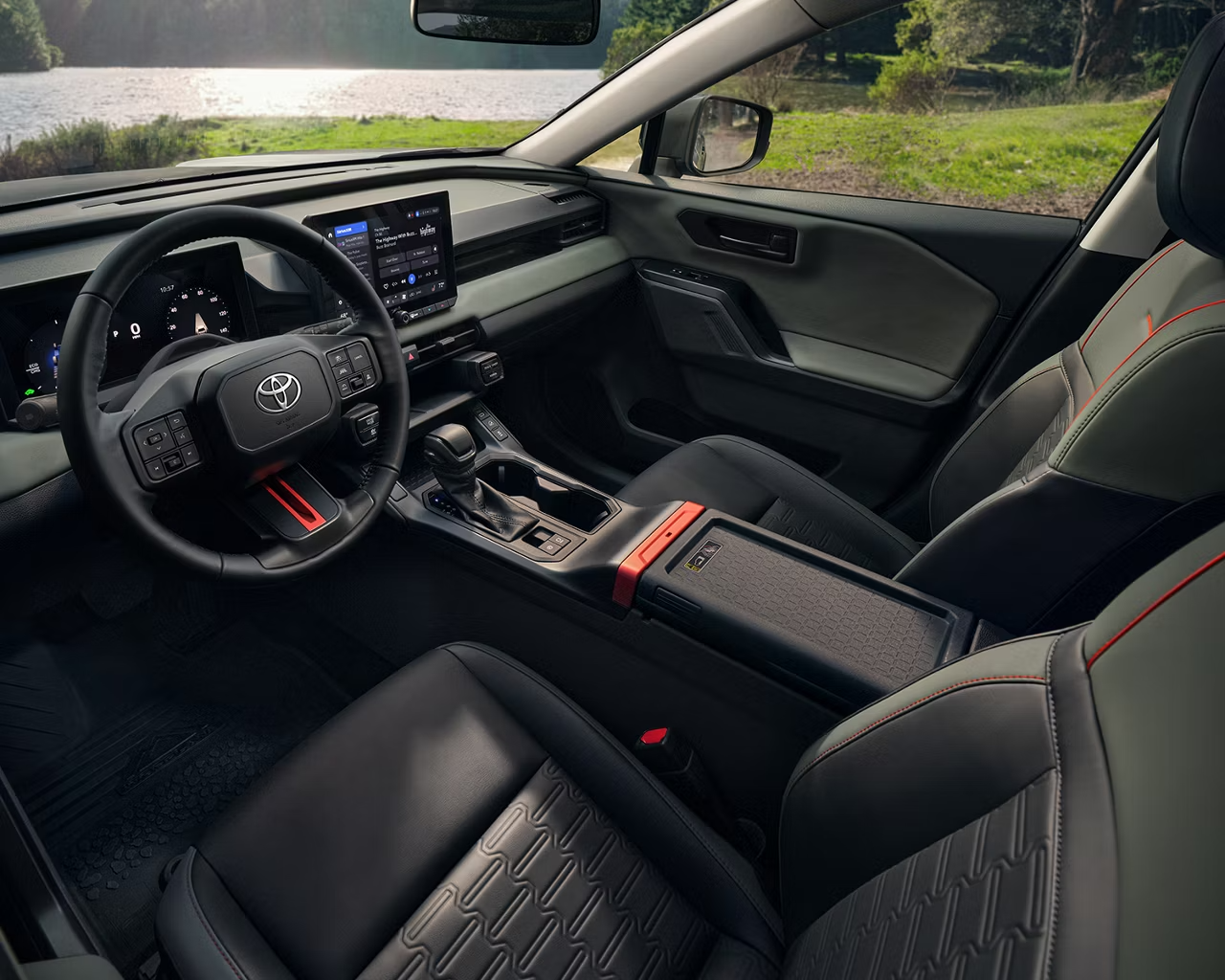 Inside, the RAV4 Hybrid welcomes you with a refined cabin that balances comfort and functionality, featuring premium SofTex® seating, smart storage solutions, and spacious cargo capacity for every adventure.