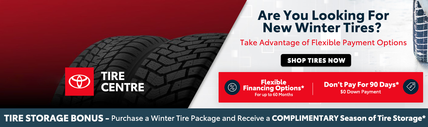 **Complimentary tire storage up to 6 months (valued at $109.95+HST) provided on the purchase of a winter tire package from Don Valley North Toyota. Offer valid 6 months from the date of purchase. Not valid in conjunction with other coupons, promotions or discounts. Applicable to Toyota only. See Don Valley North Toyota for more details.